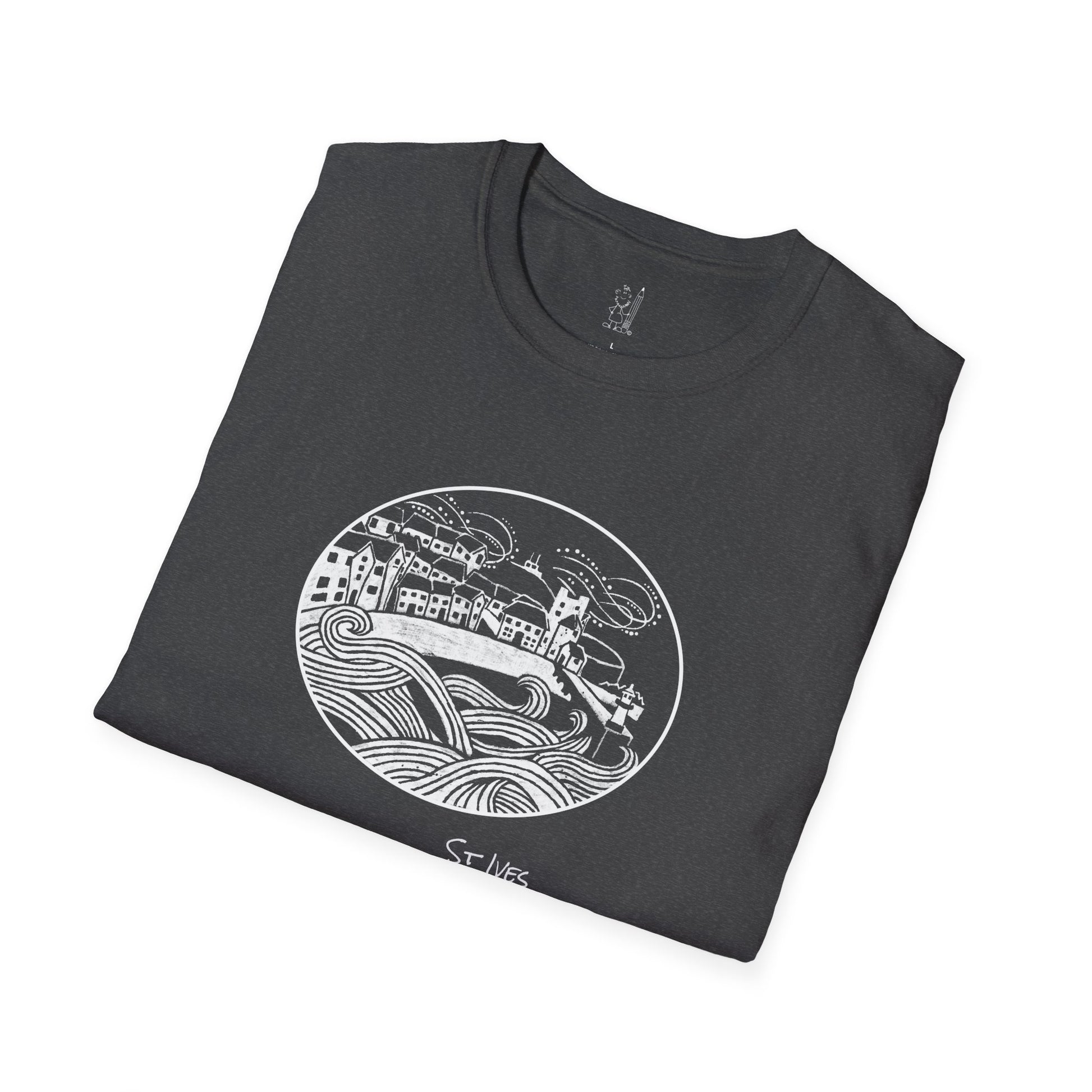 A Local Tourist favourite St Ives. A view of the Harbour and seafront with a Lino-cut style.